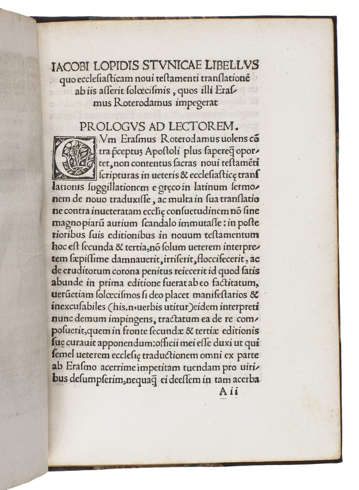 This first edition thus represents a key moment in the broader Erasmus-Stunica controversy, where the focus moved from matters of doctrine to the authority of language in sacred texts.