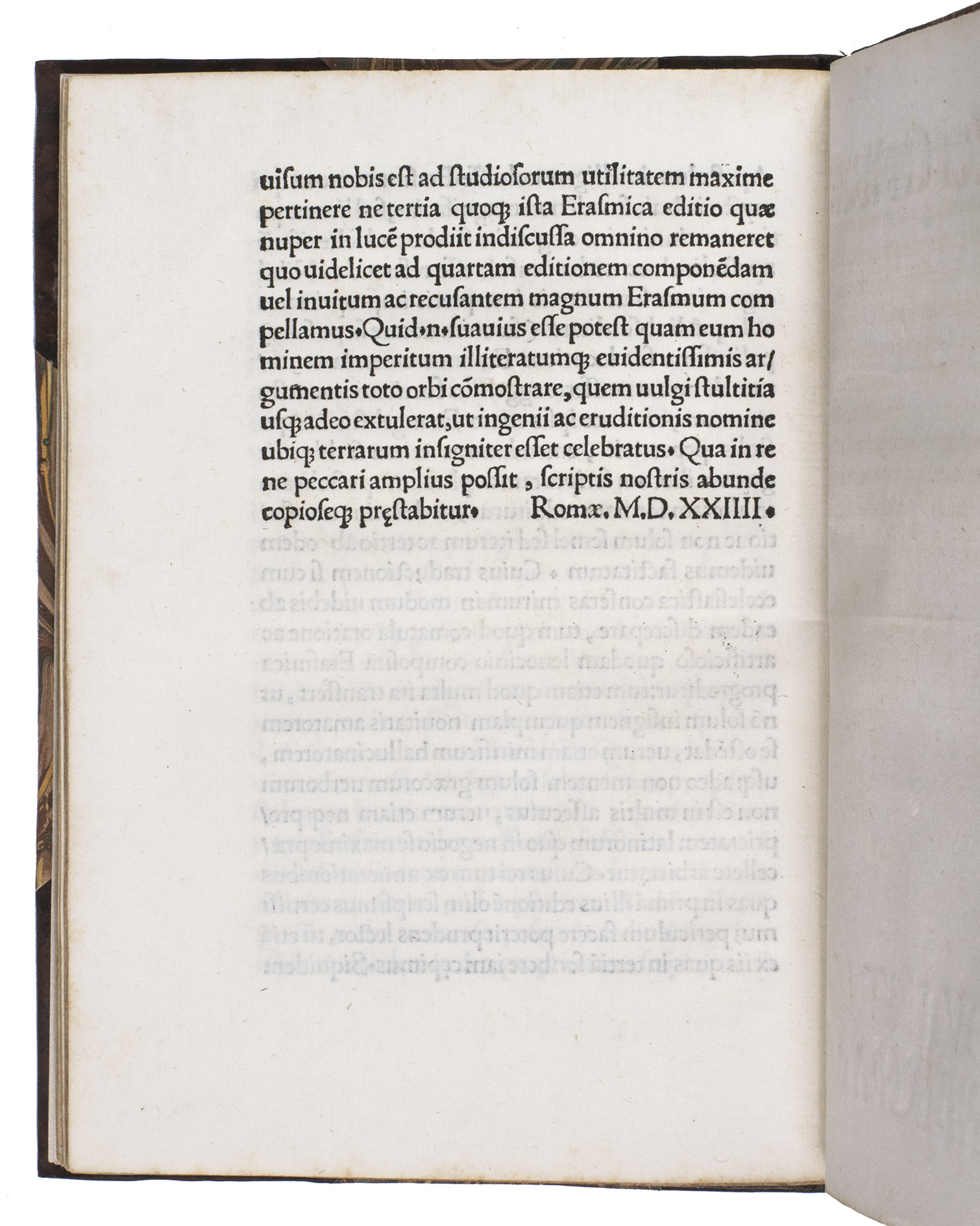 The binding is very slightly rubbed and quire D is slightly browned. Otherwiseverall in very good condition. Bedaux, Jan, De correspondentie van Desiderius Erasmus. Deel 15. Brieven 2082-2203, (2017), p. 238; Censimento nazionale delle edizioni italiane del XVI secolo, 48685; Chaparro Gómez, "Erasmo de Rotterdam y Diego López de Zúñiga: una polémica áspera y prolongada", Ágora. Estudos Clássicos em Debate 16 (2014) pp. 157-187; OPAC SBN IT\ICCU\VEAE\138702 (3 copies); USTC 838604 (3 copies, same as OPAC SBN); not in Adams; BM STC Italian; Panzer.