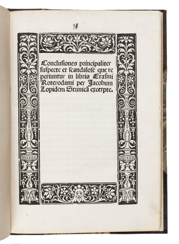 Conclusiones principaliter suspecte et scandalose que re periuntur in libris Erasmi Roterodami per Jacobum Lopidem Stunica exerpte.