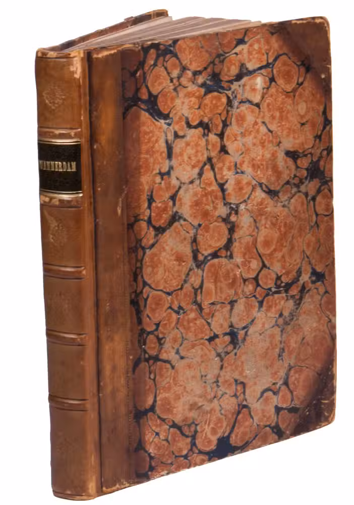 Leiden, Johannes van Abkoude, 1733. 4to. With 13 engraved plates, including 8 folding, and 1 folding table. Further with a small woodcut ornamental vignette on the title page, woodcut decorated initials, and several head- and tailpieces. Early 19th-century half blind-tooled brown sheepskin and marbled paper sides. [20], "212" [= 210], [17], [1 blank] pp.