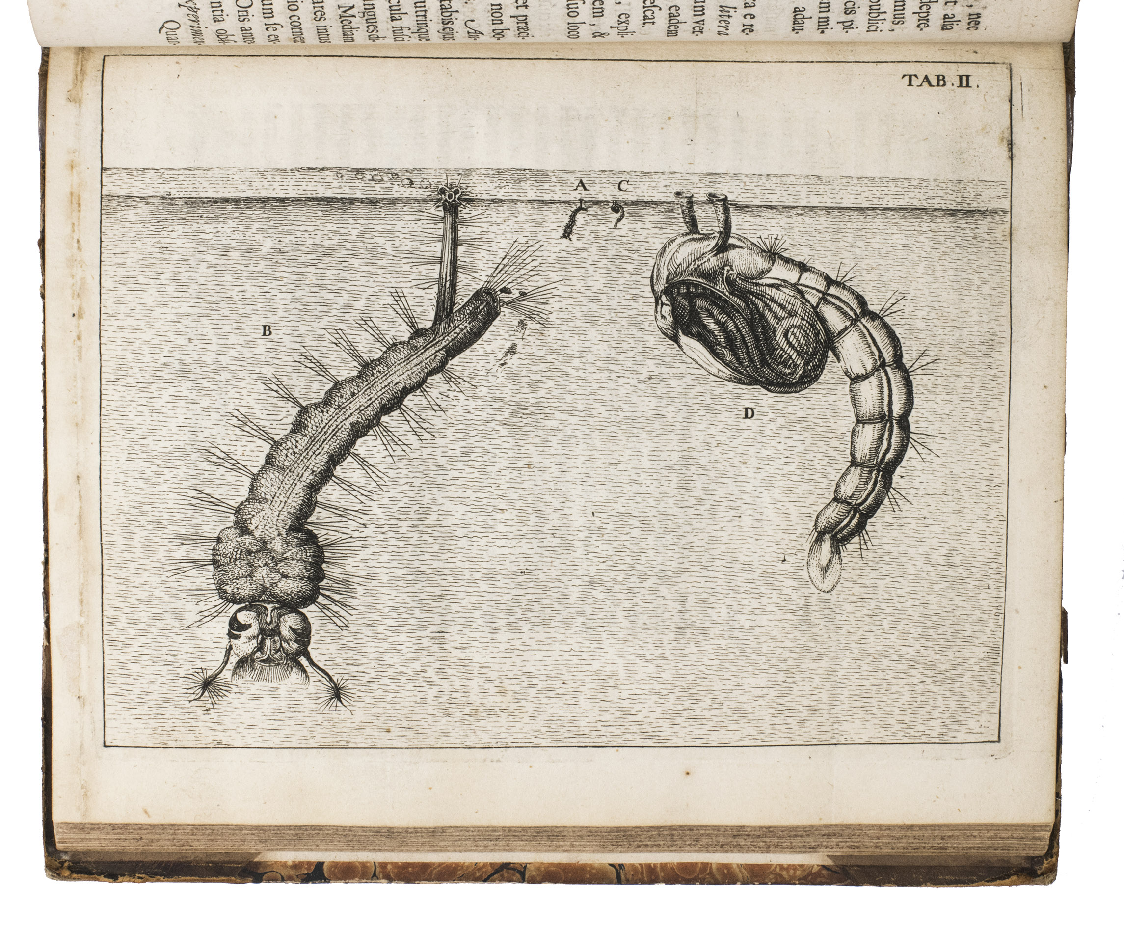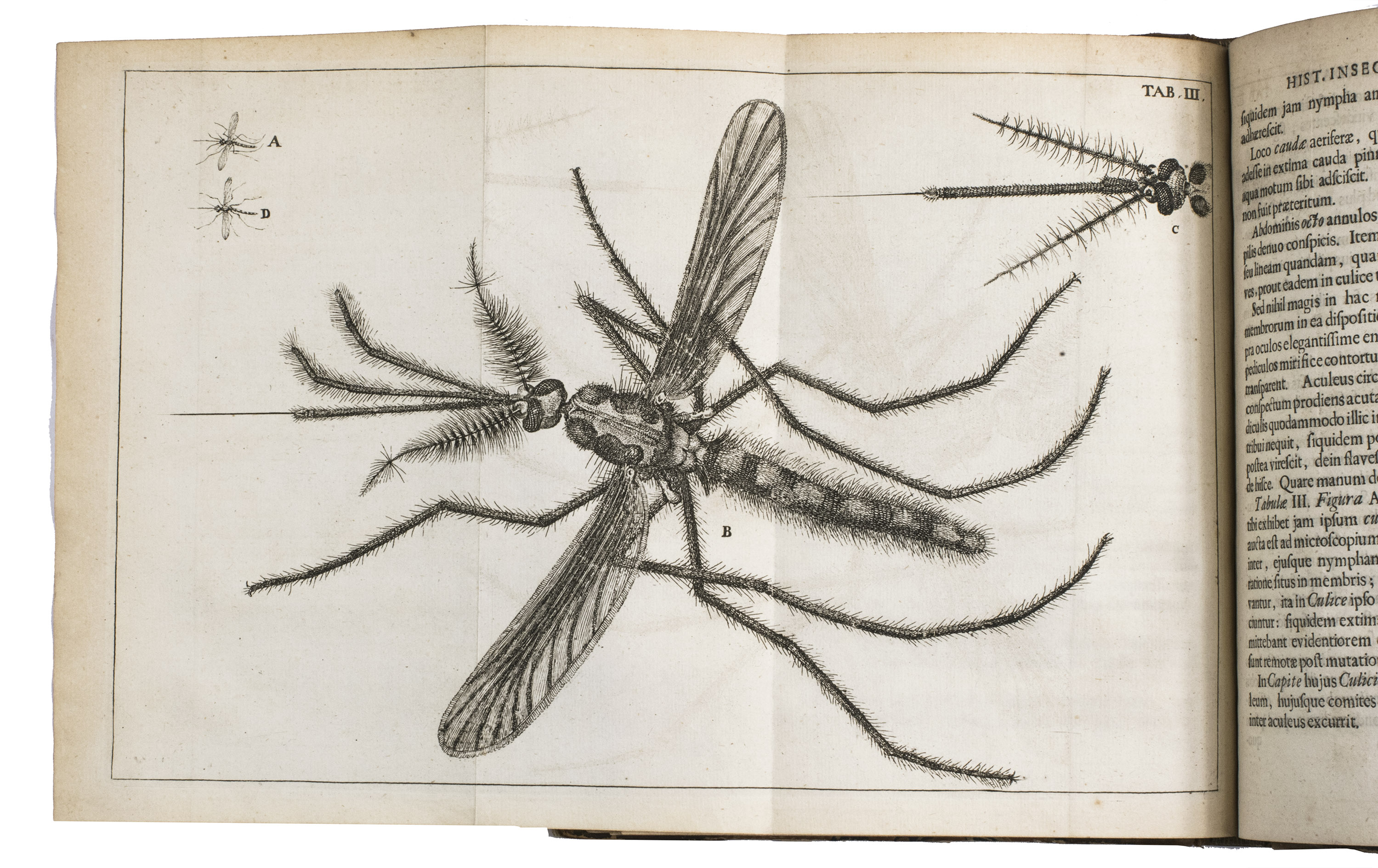 Jan Swammerdam (1637-1680) studied medicine at Leiden University and developed an interest in biological research, especially in physiology and entomology. Since Aristotle, the theory on insects was based on three suppositions, insects lack internal anatomy, they originate by spontaneous generation and they develop by metamorphosis. The idea of metamorphosis was that a sudden and total change from one kind of creature into another, comparable to the alchemical transmutation of a base metal into gold. Swammerdam's thesis was fundamentally new and significant. He believed all three suppositions to be false and devoted a wide variety of investigations to refute these ideas. In the Historia insectorum generalis, Swammerdam dealt with the issue of metamorphosis, as is indicated by the title, "General account of the bloodless animals, in which will be clearly set forward the true basis of their slow growth of limbs, the vulgar error of the transformation, also called metamorphosis, will be effectually washed away, and comprehended concisely in four distinct orders of changes, or natural budding forth of limbs" (DSB XIII, p.171). The Ephemeri vita ... (Amsterdam, 1675) and the Historia insectorum generalis are the only entomological works by Swammerdam that were published during his life.