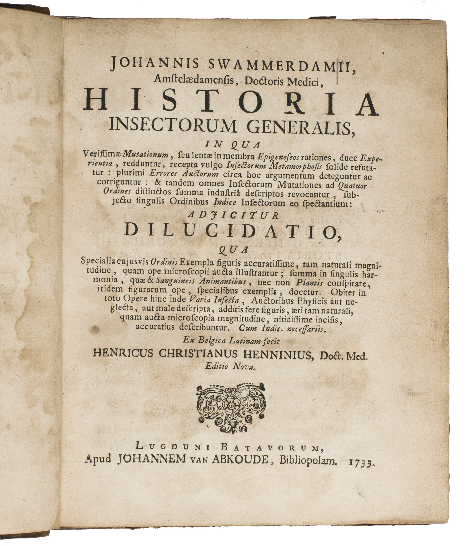 Historia insectorum generalis, in qua verissimae mutationum, seu lentae in membra epigeneseos rationes, duce Experientia, redduntur, recepta vulgo Insectorum Metamorphosis solide refutatur... Adjicitur dilucidatio ... Editio Nova.