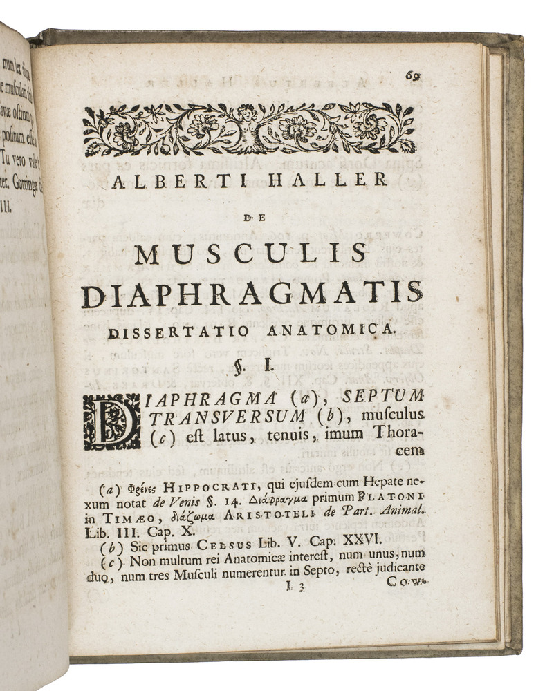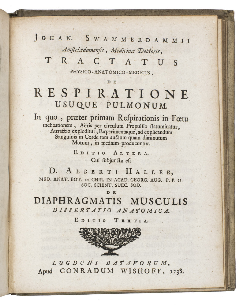Tractatus physico-anatomico-medicius de respiratione usuque pulmonum. In quo, praeter primam respirationis in foetu inchoationem... Editio altera. Cui subjuncta est D. Alberti Haller....... De Diaphragmatis musculis dissertatio anatomica. Editio tertia.