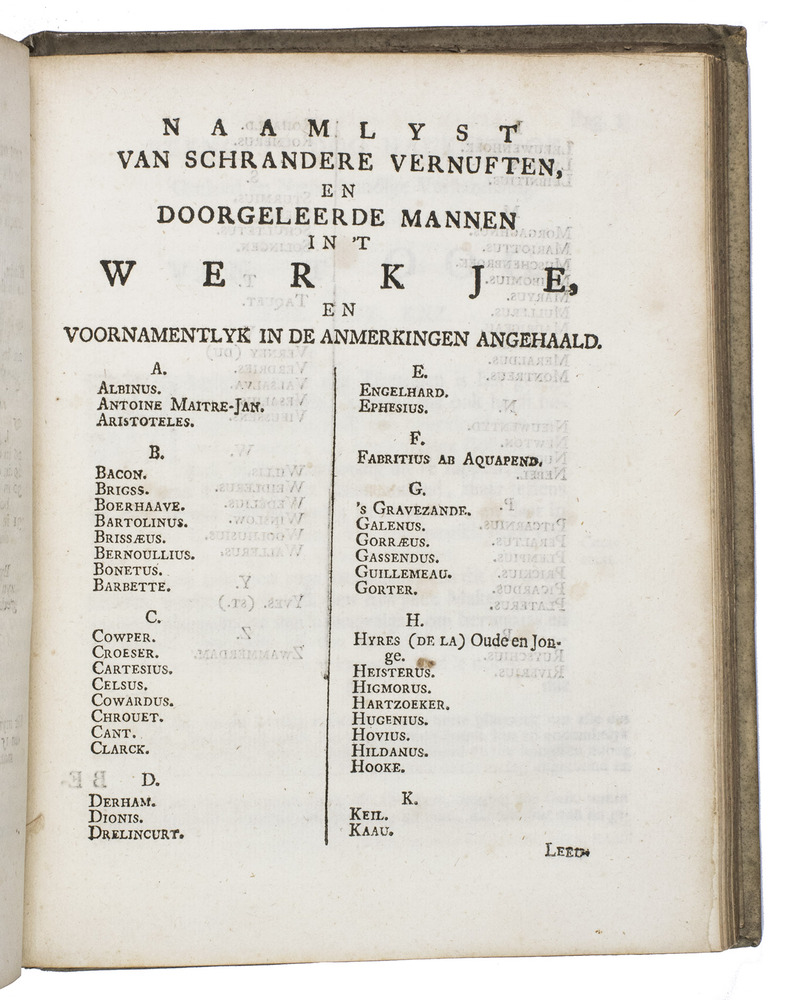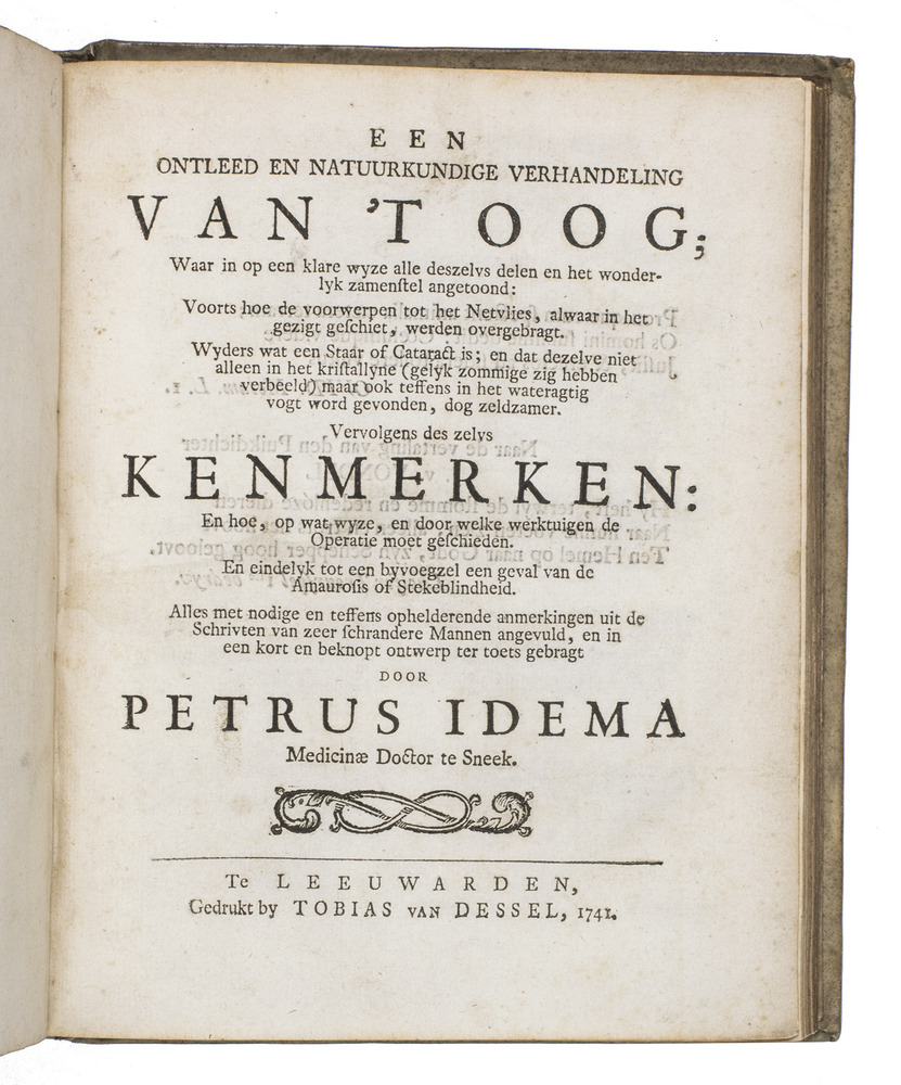 3. IDEMA, P (or Bernardus). Een ontleed en natuurkundige verhandeling van 't oog. Leeuwarden, Tobias van Dessel, 1741. (28), 96 pp.