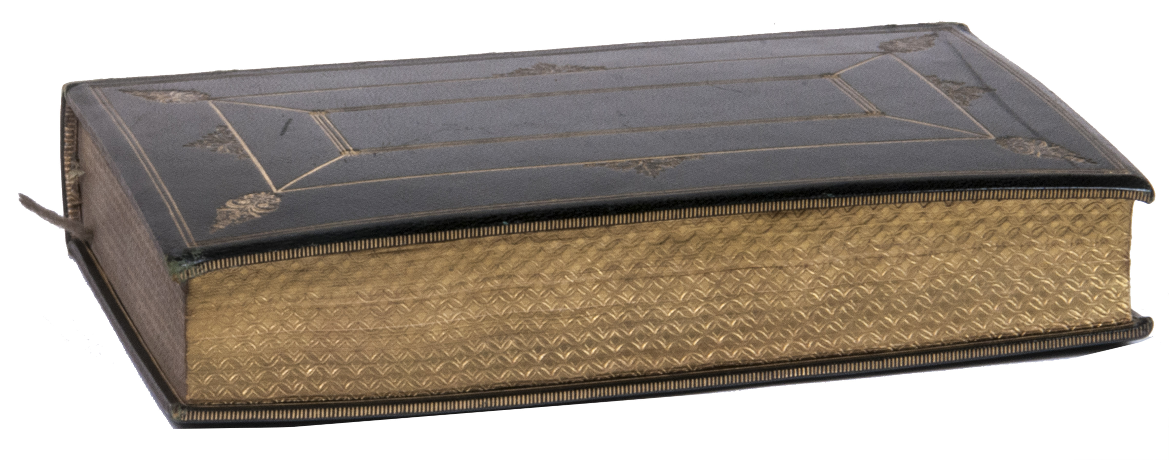 With the bookplate of the Everingham family mounted on the front pastedown, and a bookbinder's stamp ("Bound by Wheeler") on the verso of the first free flyleaf. The edges of the boards are slightly scuffed, with a few scratches on the back board, the hinges are slightly weakened, but the structural integrity of the binding is still intact. The plate is slightly foxed, the title page is somewhat browned, the reading ribbon has broken, but otherwise internally very clean. Overall in good condition. WorldCat 5339039.