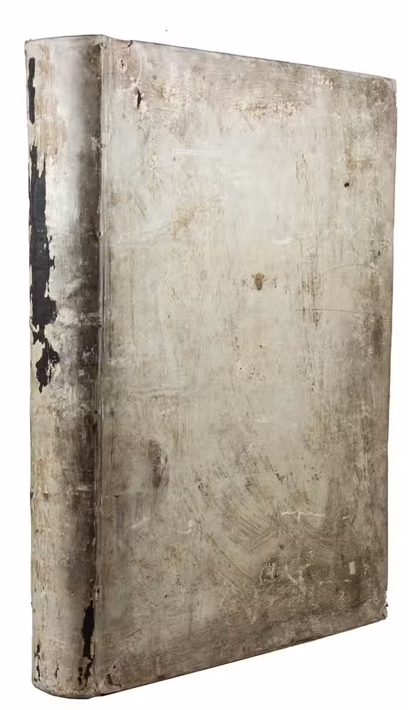 The title-page, last plate and last 2 text leaves are rather worn, with tears repaired in the last plate and second to last text leaf, a stain in the gutter margin of the last 3 text leaves, and foxing. About a dozen leaves scattered throughout the book are somewhat browned. The book is further in very good condition, with occasional minor foxing, spots or small rust holes. The binding shows traces of black velvet that must have once covered it and each board has nail holes where a central boss, 4 cornerpieces and 2 fastenings were once mounted. It remains structurally sound. An extraordinary copy of Thibault's great fencing manual, splendidly coloured for presentation to King Louis XIII's second cousin. Berghman, Cat. Raisonné 687; Copinger 4705; H.-A. von Derschau, Verzeichniss seiner seltenen Kunst-Sammlung (auction, Nürnberg, 1 August 1825 and following days), part 3, lot 849 (this copy); H. de la Fontaine Verwey, "Gerard Thibault and his Academie de l'Espee" (www.swarta.be/uploads/4/4/1/2/44127527/gerard_thibault_and_his_academy_of_the_sword.pdf); J.A. Lane, "Gerard Thibault, Académie de lespée", in: M. Lommen, ed., The book of books (2012), pp. 158-161; W. Otterspeer, "De schermschool van Thibault", in: J. Bos & E. Geleijns, ed., Boekenwijsheid (2009), pp. 98-104 ; Rahir 273; STCN (5 copies); Sloos, Warfare 5009 (lacking 2 armorial plates); Willems 302; for Bailly and his father, see also: J. Bruyn, "David Bailly", in: Oud Holland, 66 (1951), pp. 148-164, 212-227; Hollstein I, p. 77; Thieme-Becker II, pp. 372-373; J.H. Witkam, Dagelijkse gang van zaken aan de Leidse Universiteit van 1581 tot 1596, vols. 4 (1970), pp. 161-166, & 5 (1973), p. 76; https://rkd.nl/nl/explore/artistss/3626.