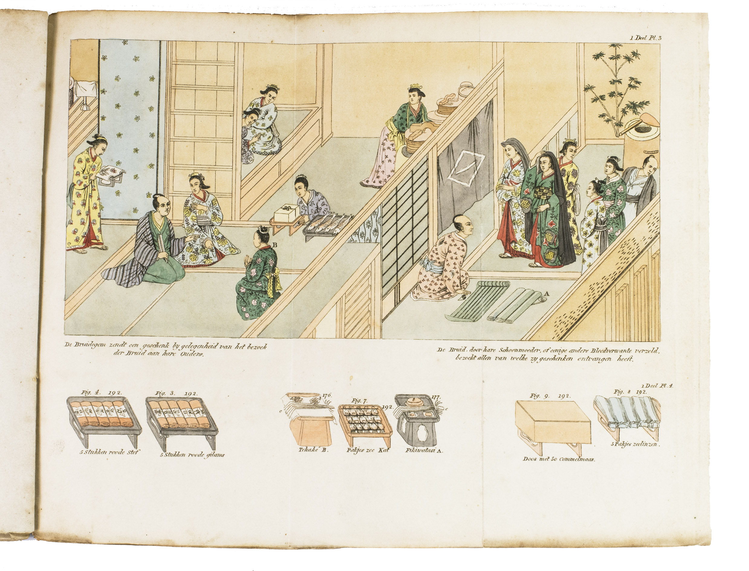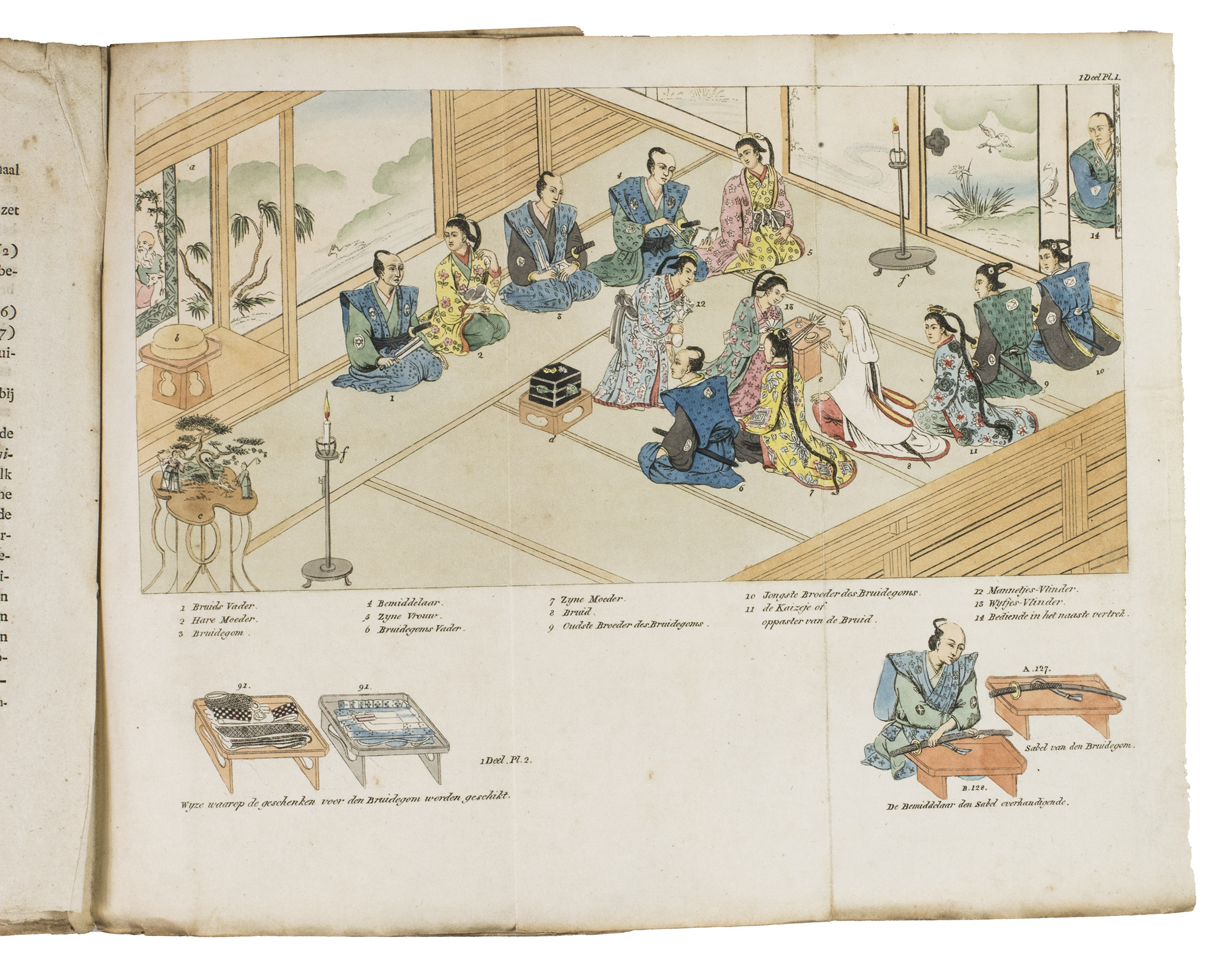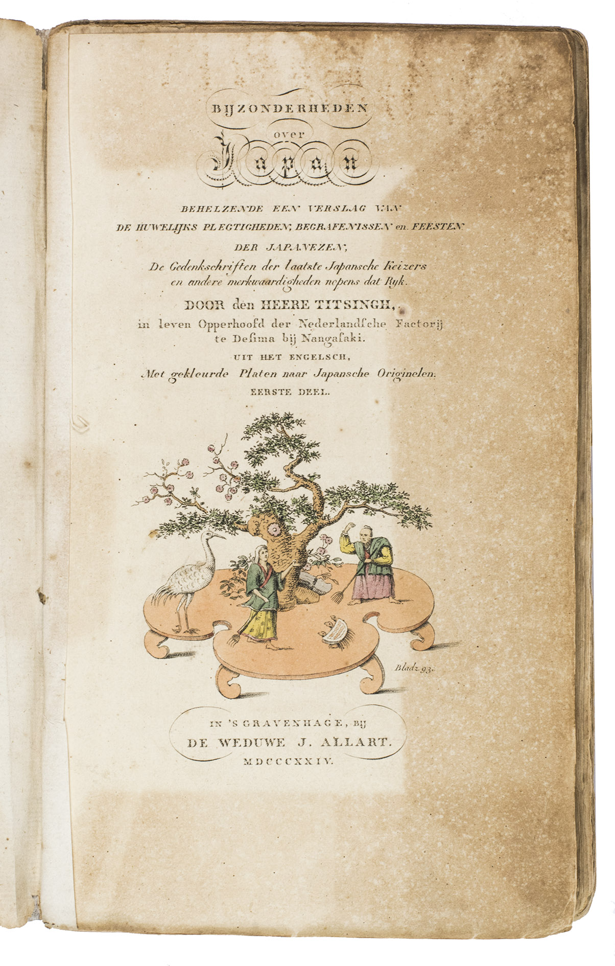 First Dutch edition of a beautifully illustrated work on the Japanese festive ceremonies and customs. The work was written by Isaac Titsingh (1745-1812), then Head of the Dutch Factory at Decima, the only place in Japan from where connections with the rest of the world were maintained until far into the 19th century. Titsingh was allowed to visit the Japanese court several times, and is therefore one of the very few European observers and eye-witnesses of Japanese culture and customs in the 18th century.
