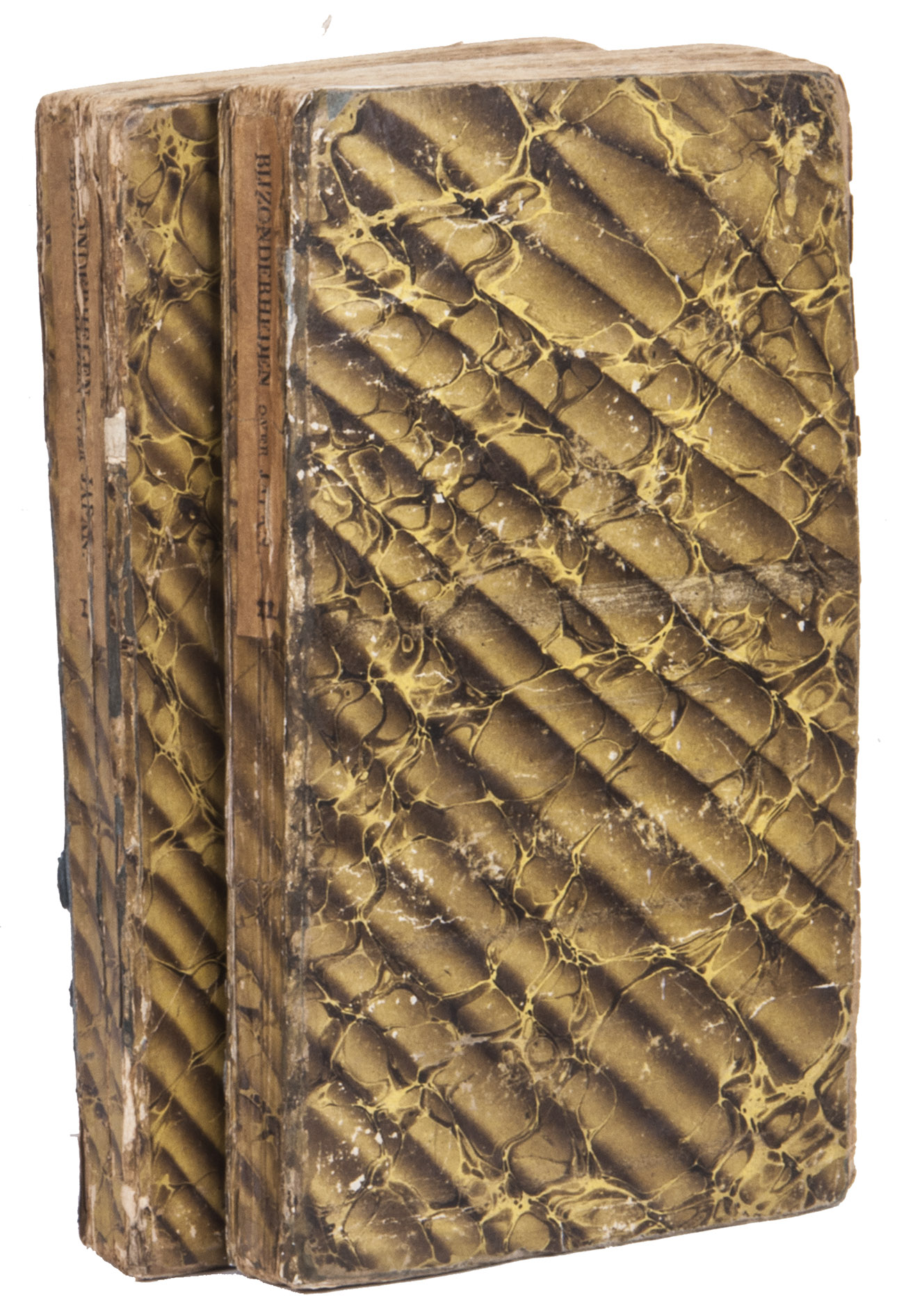 The Hague, the widow of J. Allart, 1824-1825. 2 volumes. 8vo. With 4 hand-coloured folding aquatint plates, and a hand-coloured engraved vignette on the title page of each volume. Contemporary marbled boards. XVI, 250; [1], [1 blank], 264 pp.