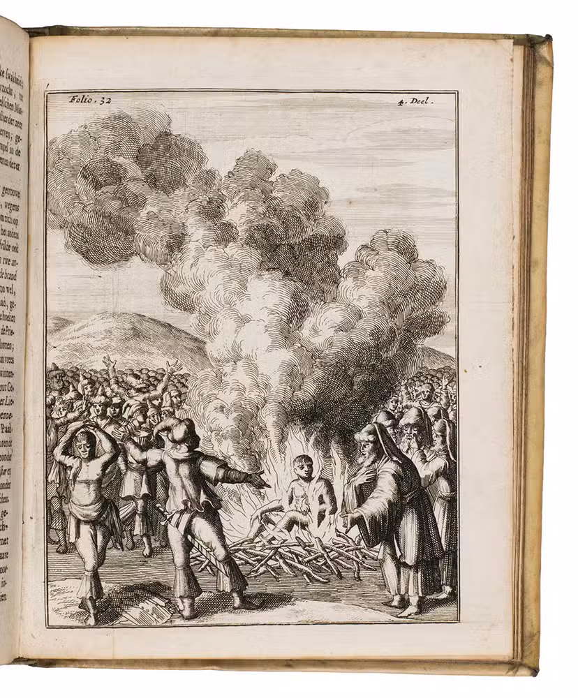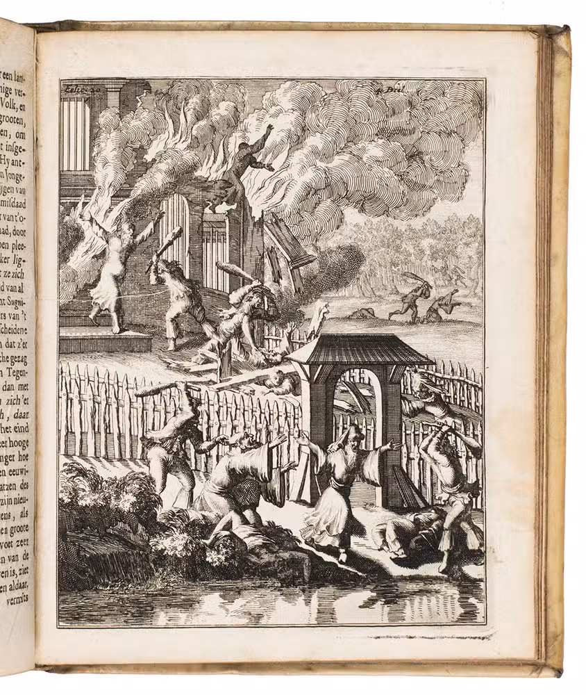 With the bookplate of Buijnsters-Smets on the front paste-down and the owner's inscription of M Buisman ("M. Buisman 27/12 '32") on the first free endpaper. The binding is slightly stained and scratched, slightly water stained in the head margin and occasionally very slightly foxed. Overall in very good condition. Buisman 2290 (Buisman sale 751); Davidson, p. 43; Klaversma/ Hannema 700; Scheepers I, 669; Van Eeghen/Van der Kellen 55; STCN 850278570 (6 copies); cf. Landwehr VOC 373 (note); Tiele, Bibl. 487 (1701 edition); Imaginary Voyages 41 (3rd French ed., 1682).