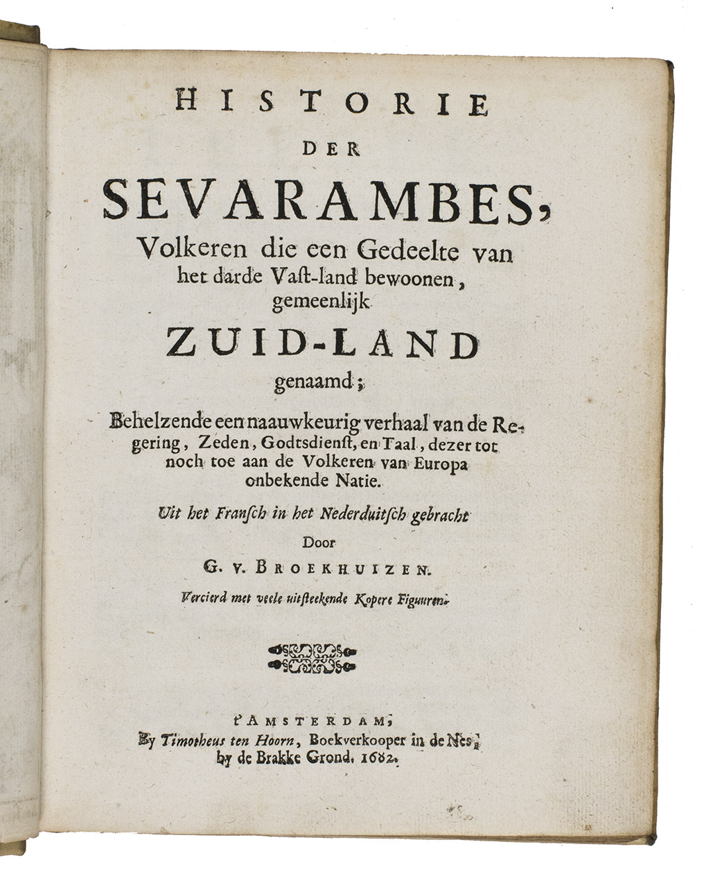 Historie der Sevarambes. Volkeren die een gedeelte van het darde vast-land bewoonen, gemeenlijk Zuid-land genaamd...