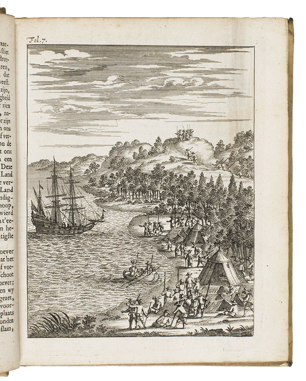 Very rare, the first fully illustrated edition of this seventeenth-century imaginary voyage to western Australia, based on the story of the wreck of the VOC ship Vergulde Draeck in 1656. The plates are thus early - if imaginary - depictions of the Australian coast, and include two coastal scenes depicting the first meeting with the local population, the Australian court, and the fabulous fauna.