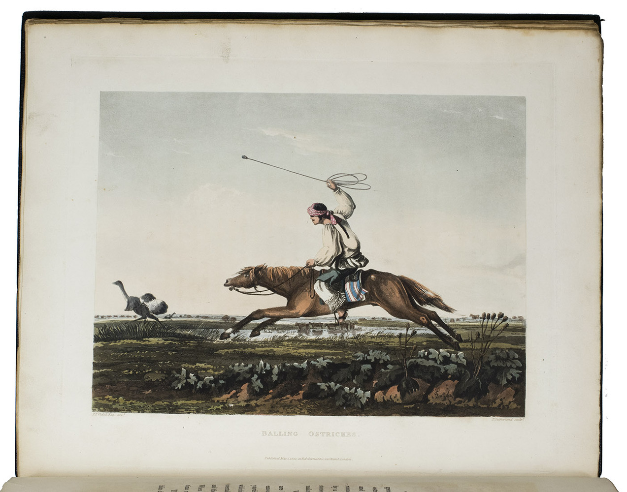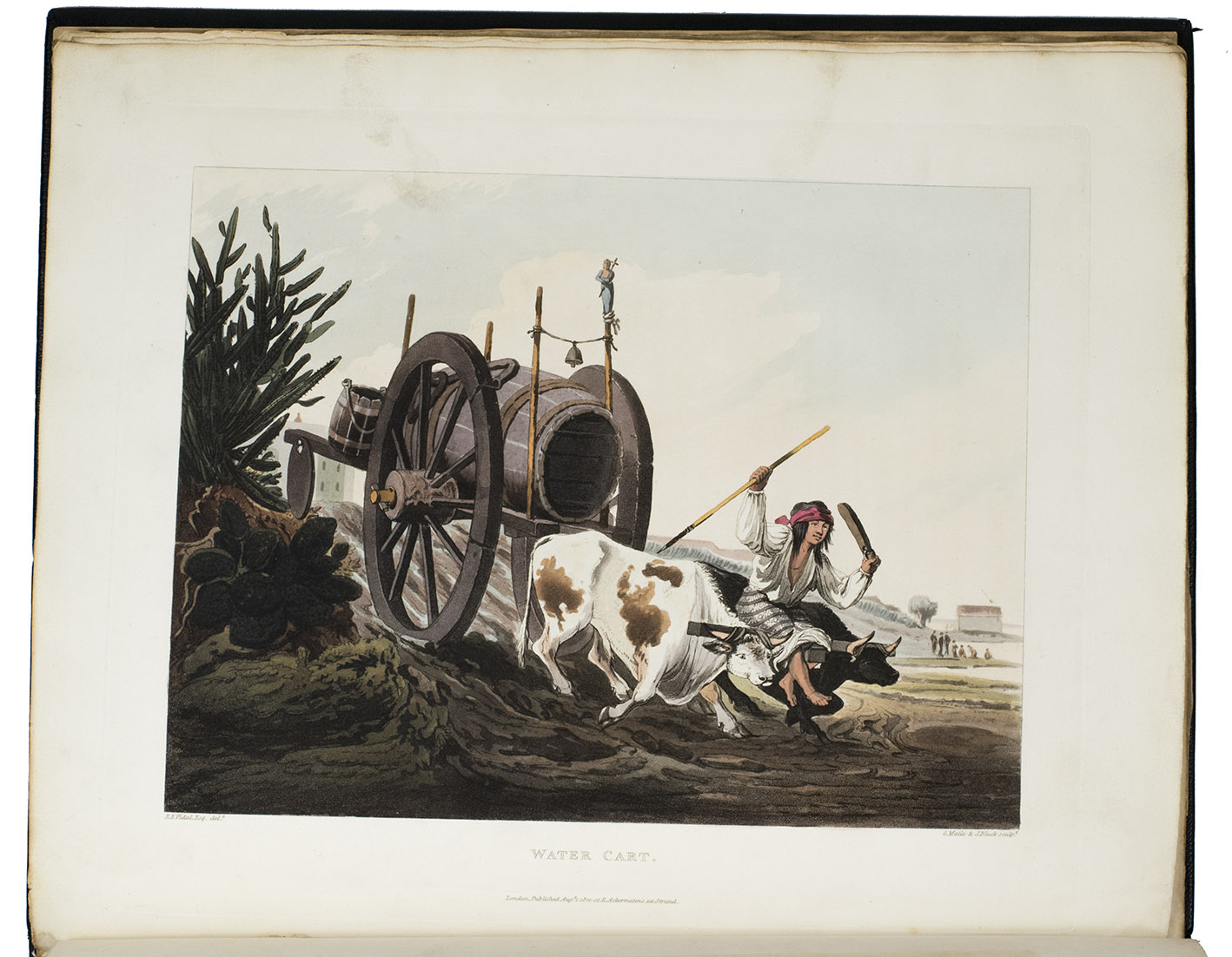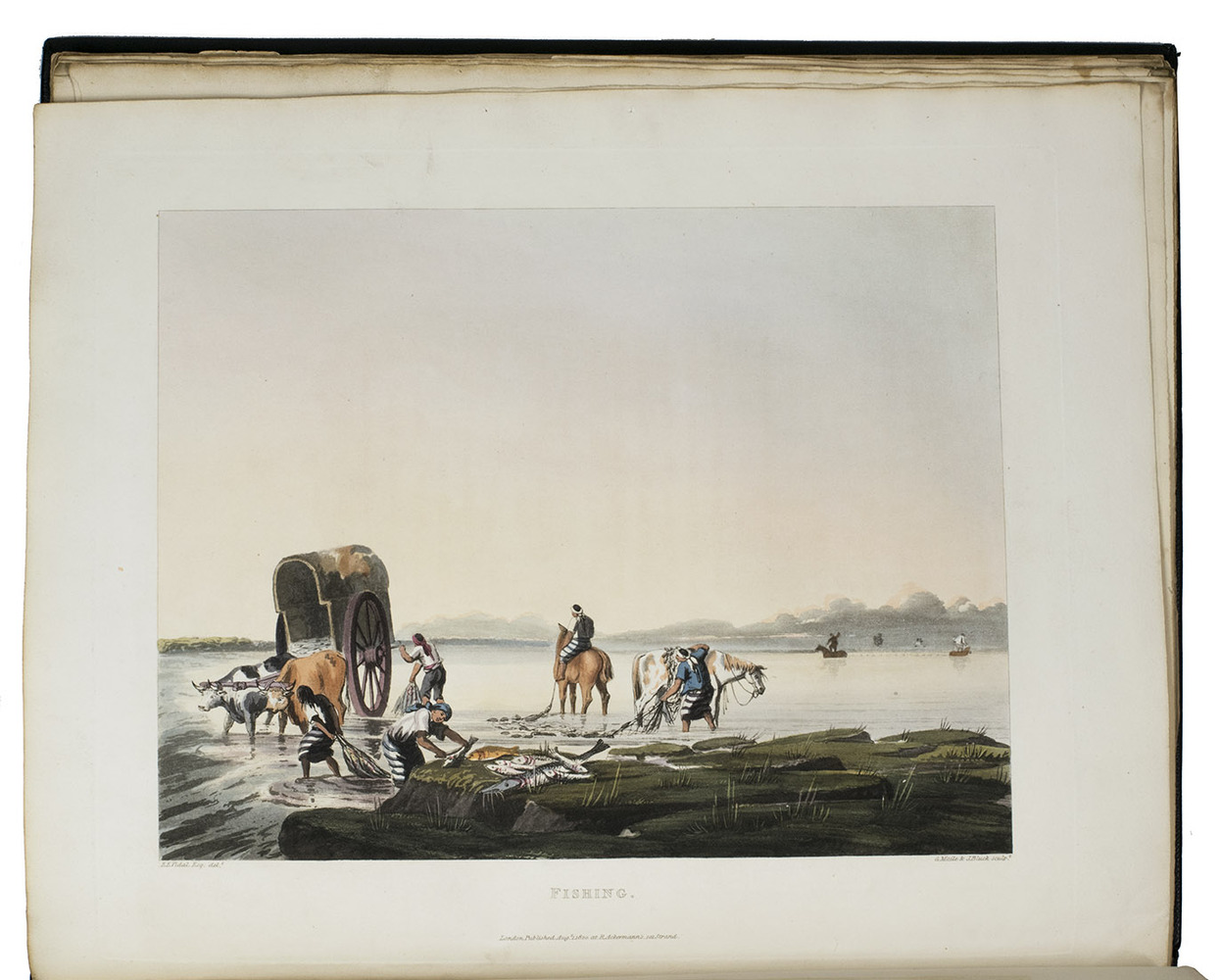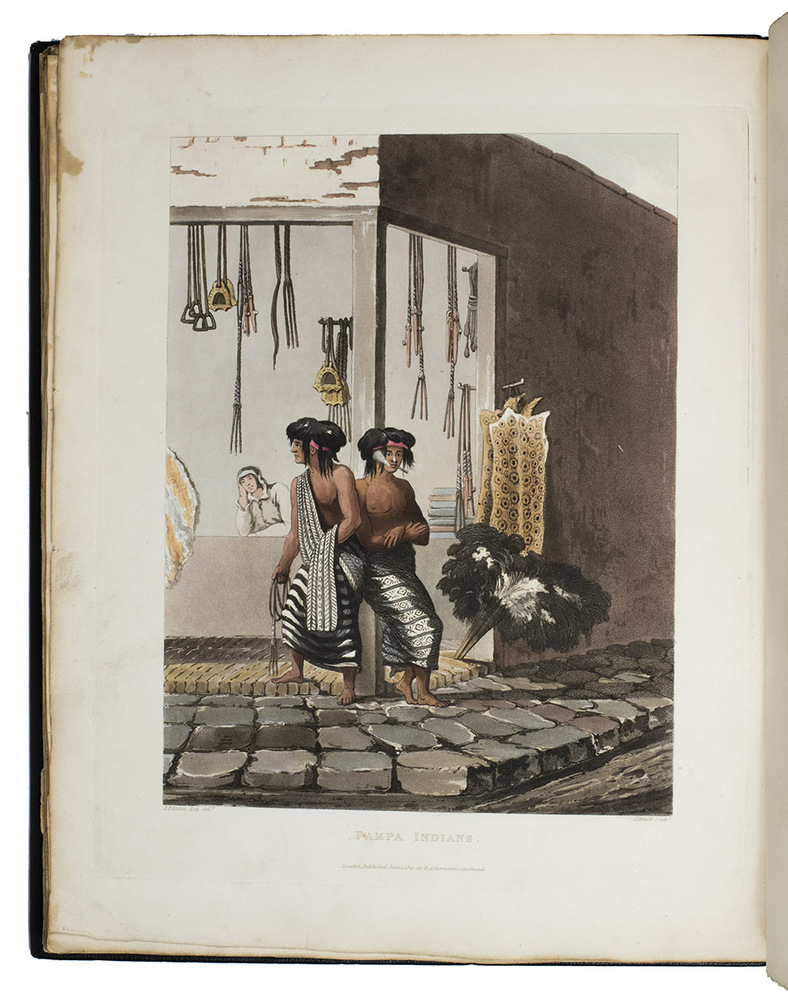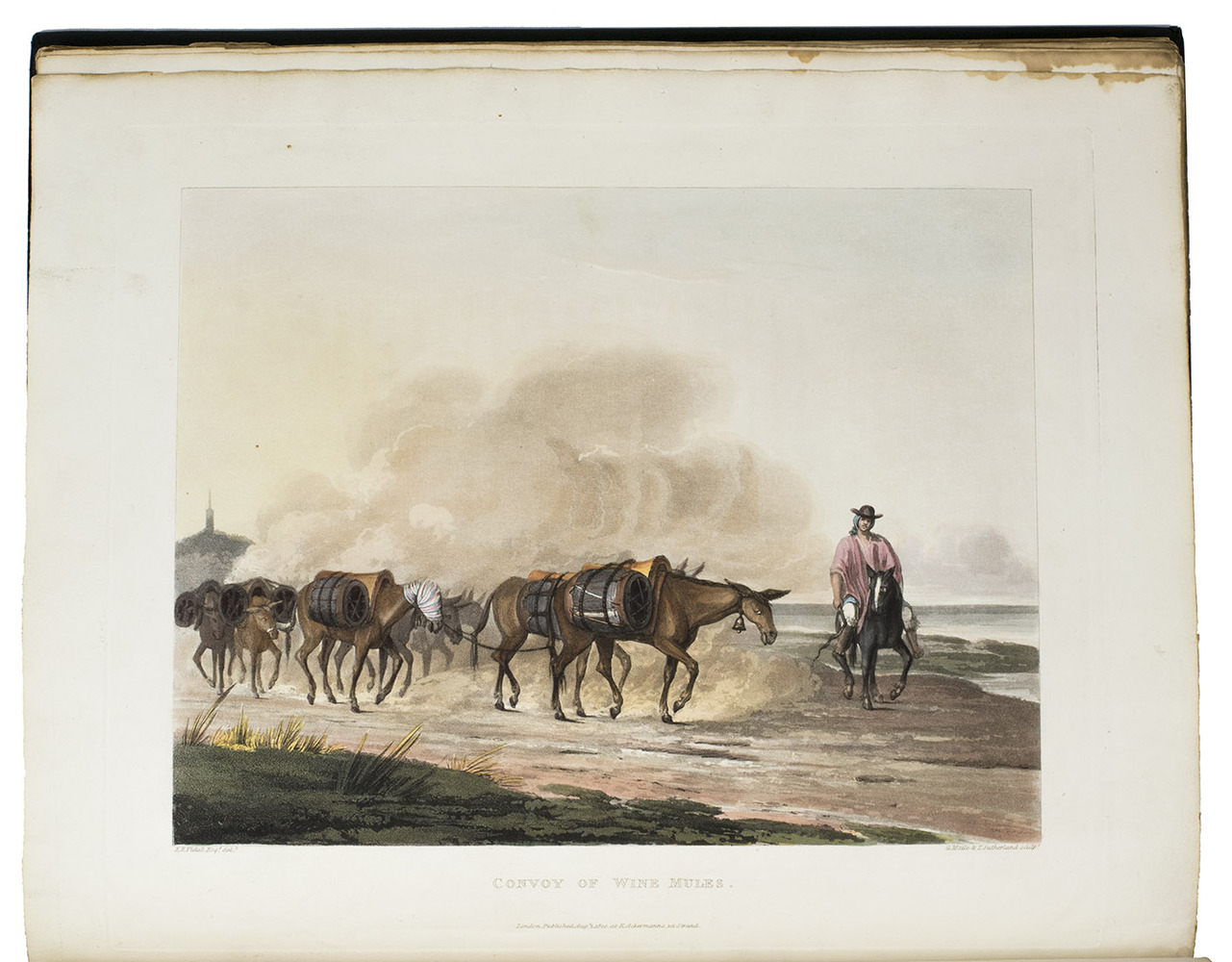 First printing of beautiful hand-coloured aquatint views of Argentina, all conceived and drawn from life by Emeric Essex Vidal in the years 1816 to 1818, accompanied by descriptions of the scenery, costumes and habits of the peoples and regions depicted. The plates were executed by various engravers between May and October 1820 and first issued in 6 monthly parts. 750 copies, including the present, were issued in Elephant 4to format. There was also an issue in Atlas folio and apparently a reprint in large and small 4to, still dated 1820, not normally distinguished in the literature from the present first printing (Palau and Sabin describe the work as a folio, but the Elephant 4to is often described as a folio). Tooley notes "the importance of its subject" and describes this publication as "the only notable colour plate book in English dealing with the Argentine".