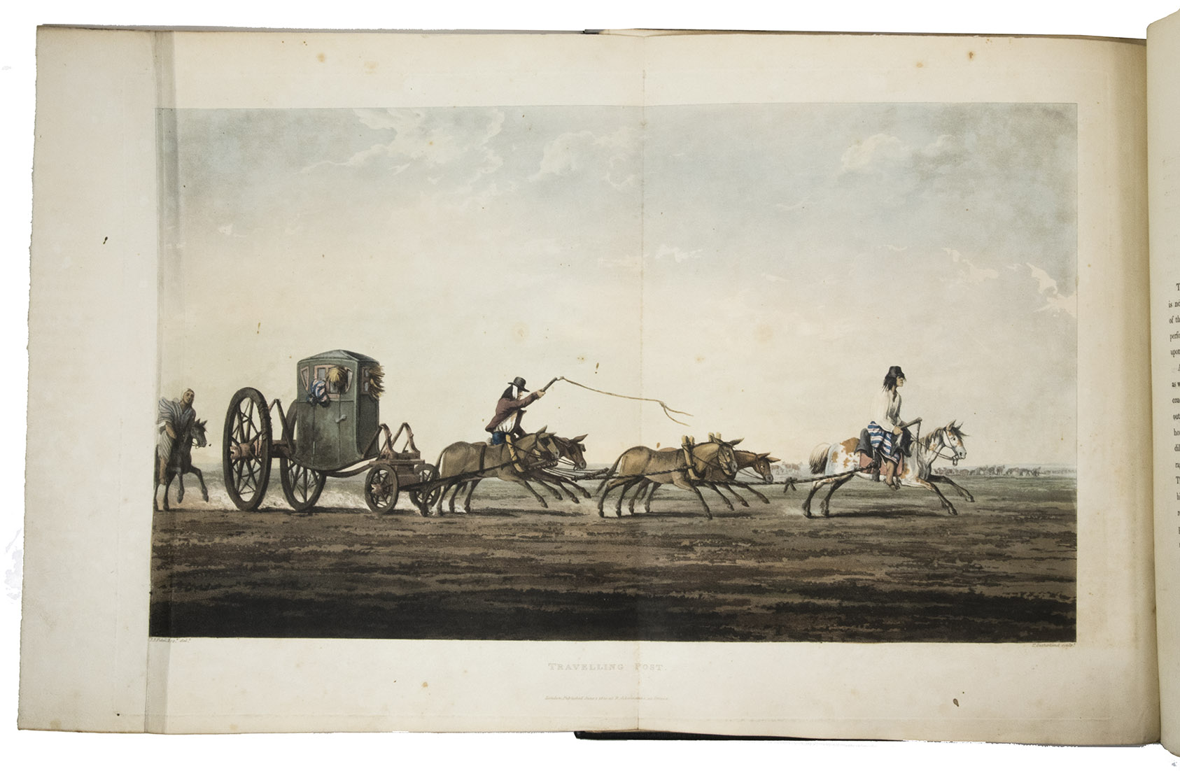 London, R. Ackermann (printed by L. Harrison), 1820. Elephant 4to (36.5 x 30 cm). With 24 unnumbered hand-coloured aquatint plates, including 4 folding, all drawn by Vidal and executed by G. Maile, T. Sutherland, G. Bluck and D. Havell. 20th-century gold-tooled, black morocco. XXVIII, 115 pp.