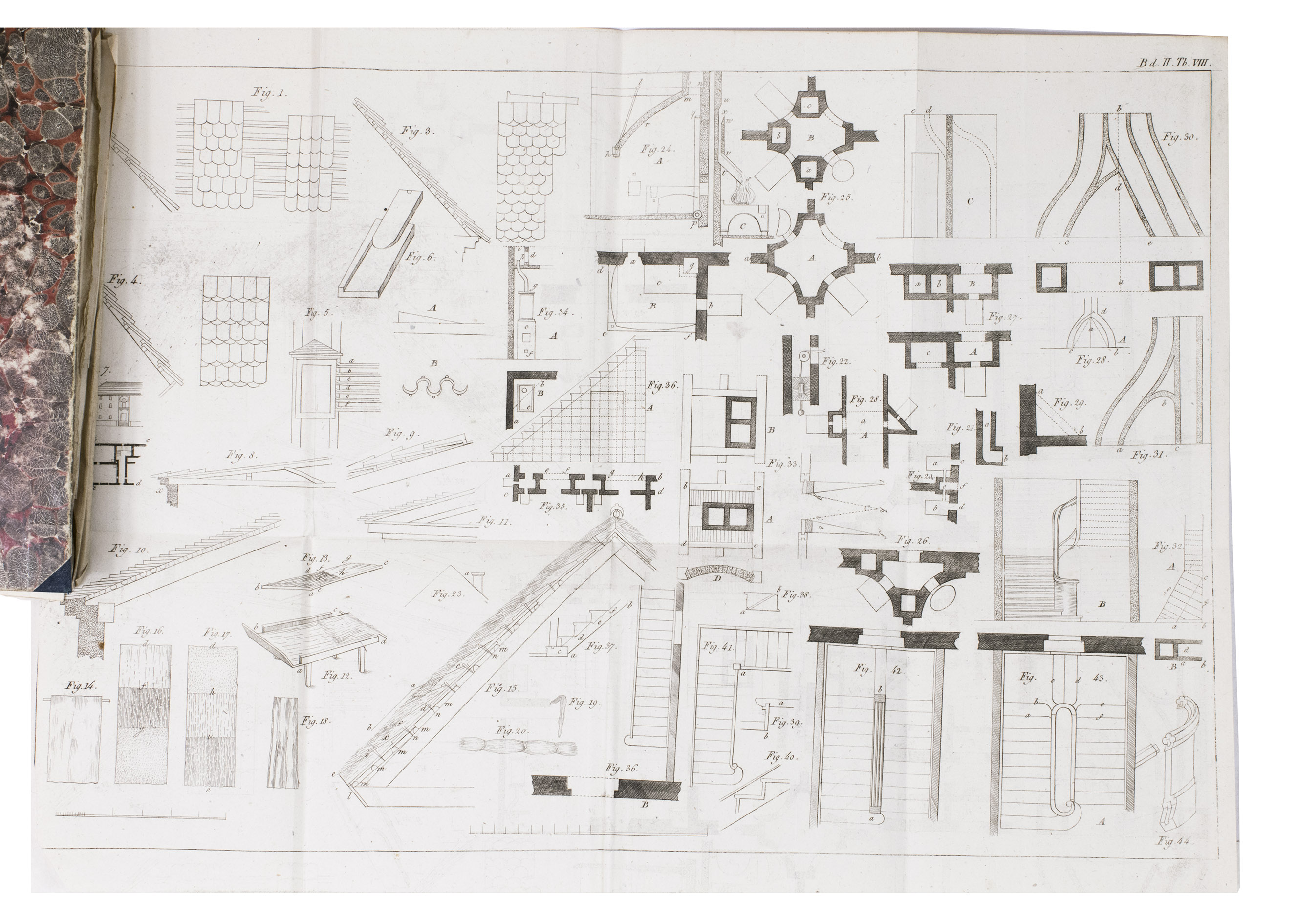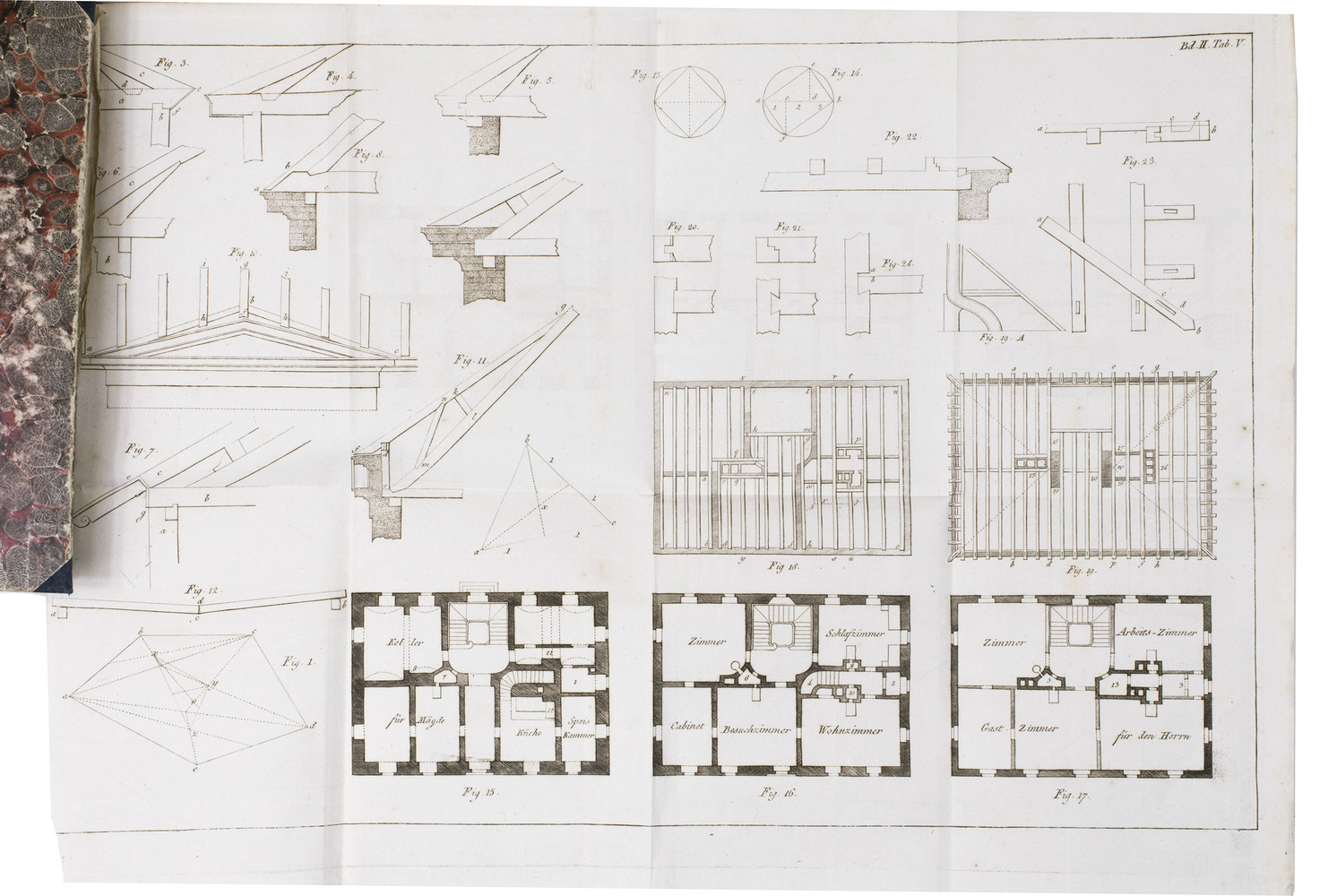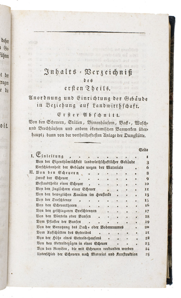 Augsburg, Von Jenisch und Stagesche Verlagshandlung, 1840. 2 volumes. With numerous illustrations and figures of detailed construction-plans of all sorts of farm buildings on 20 large folding engraved plates. Contemporary half blue decorative cloth, marbled paper sides, gold-stamped spines. XVIII, 292; X, 294 pp.