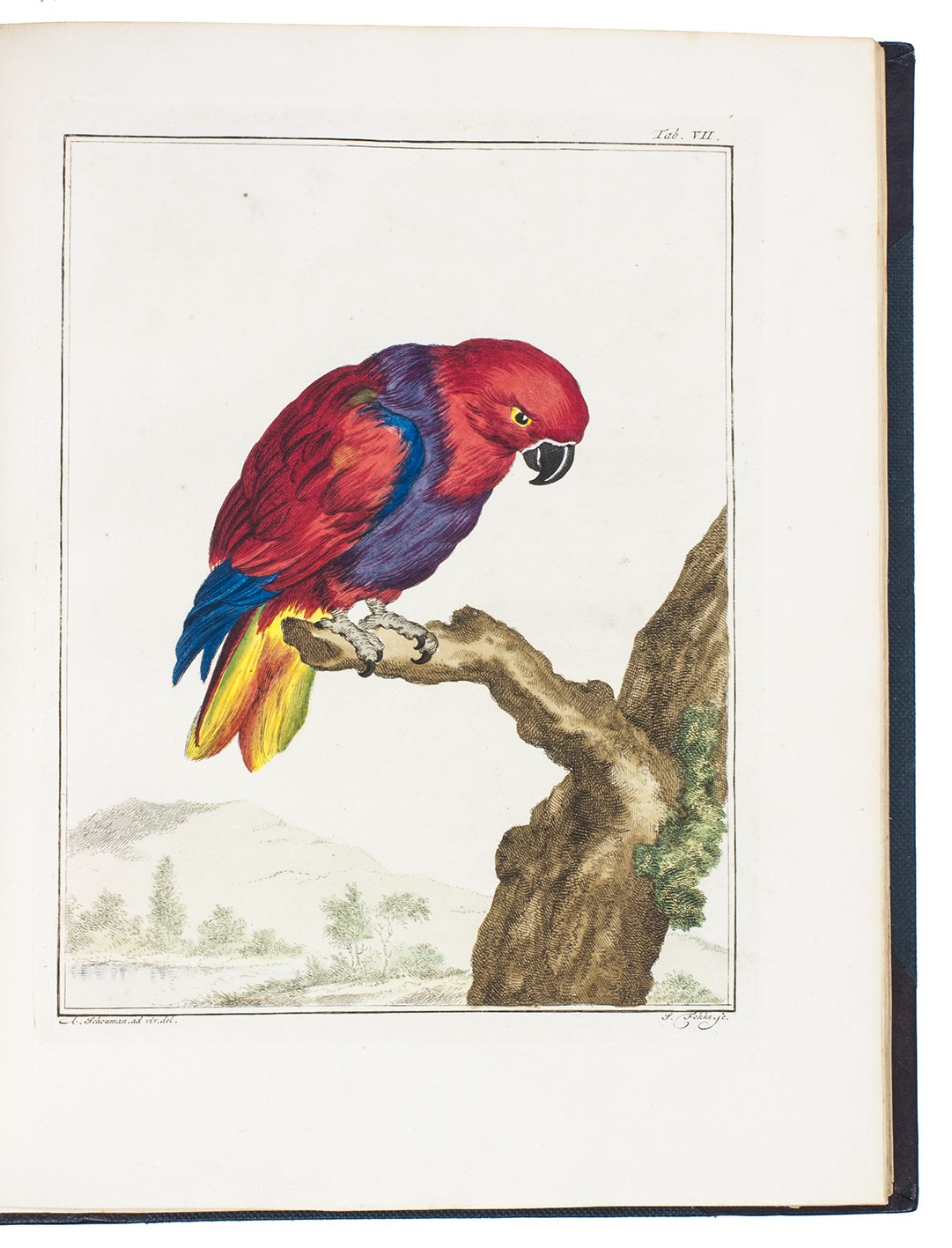 Amsterdam, P. Meijer (parts 1- 14 and 29-31) and heirs of P. Meijer and G. Warnars (parts 15-20), 1766-1787. 31 parts in 1 volume. 4to (26.5 x 20.5 cm). With 33 hand-coloured engraved plates and 1 uncoloured folding engraved plate. 19th-century black half morocco, gold-tooled spine. 15; 8; 8; 12; 22; 8; 9; 6; 7; 7; 7; 10; 8; 20; 12; 6; 6; 6; 10; 10; 6; 6; 8; 8; 23; 15; 12; 14; 14; 44; 12 pp.