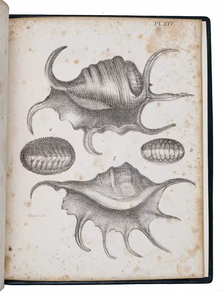 Considerable foxing to the plates, as often, but otherwise in very good condition. A rare publication on shells. www.biodiversitylibrary.org/page/10944209; cf. WorldCat (electronic facsimile); not in BM NH; Nissen ZBI; Sabin.