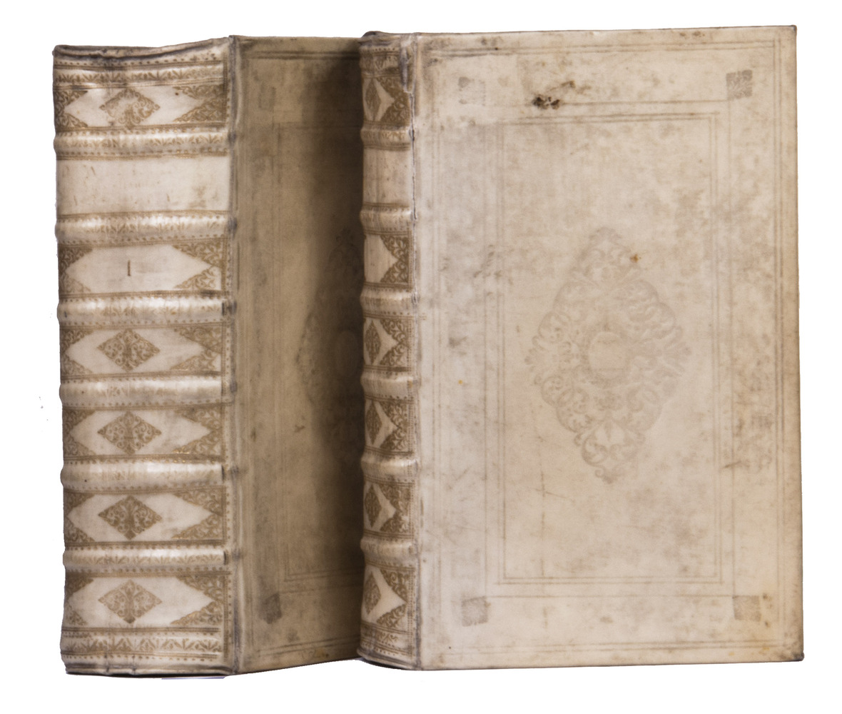 Amsterdam, Arent van Huyssteen, 1737. 2 volumes. 8vo. With an engraved frontispiece and an engraved title vignette in each volume, the first volume with 37 double-page engraved plates, a folding portrait of the author, and a double-page map, the second volume with 32 double-page engraved plates, and a double-page letterpress family tree. Contemporary gold- and blind-tooled vellum. [16], 400; [2], 327, [9]