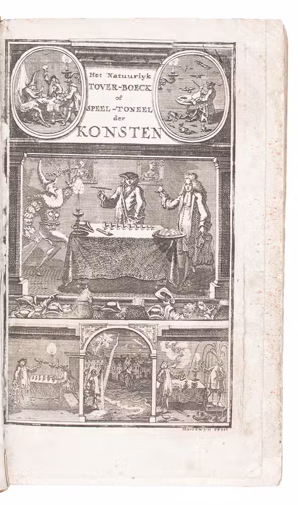 Het nieuw vermeerdert natuerlyk toover-boek of speel-tooneel der konsten. Bevattende omtrent 2000 natuerlyke toover-konsten en poetsen, zoo uyt de guychel tas als kaert-spel en tereling ... dienstig tot heerlyk vermaek.