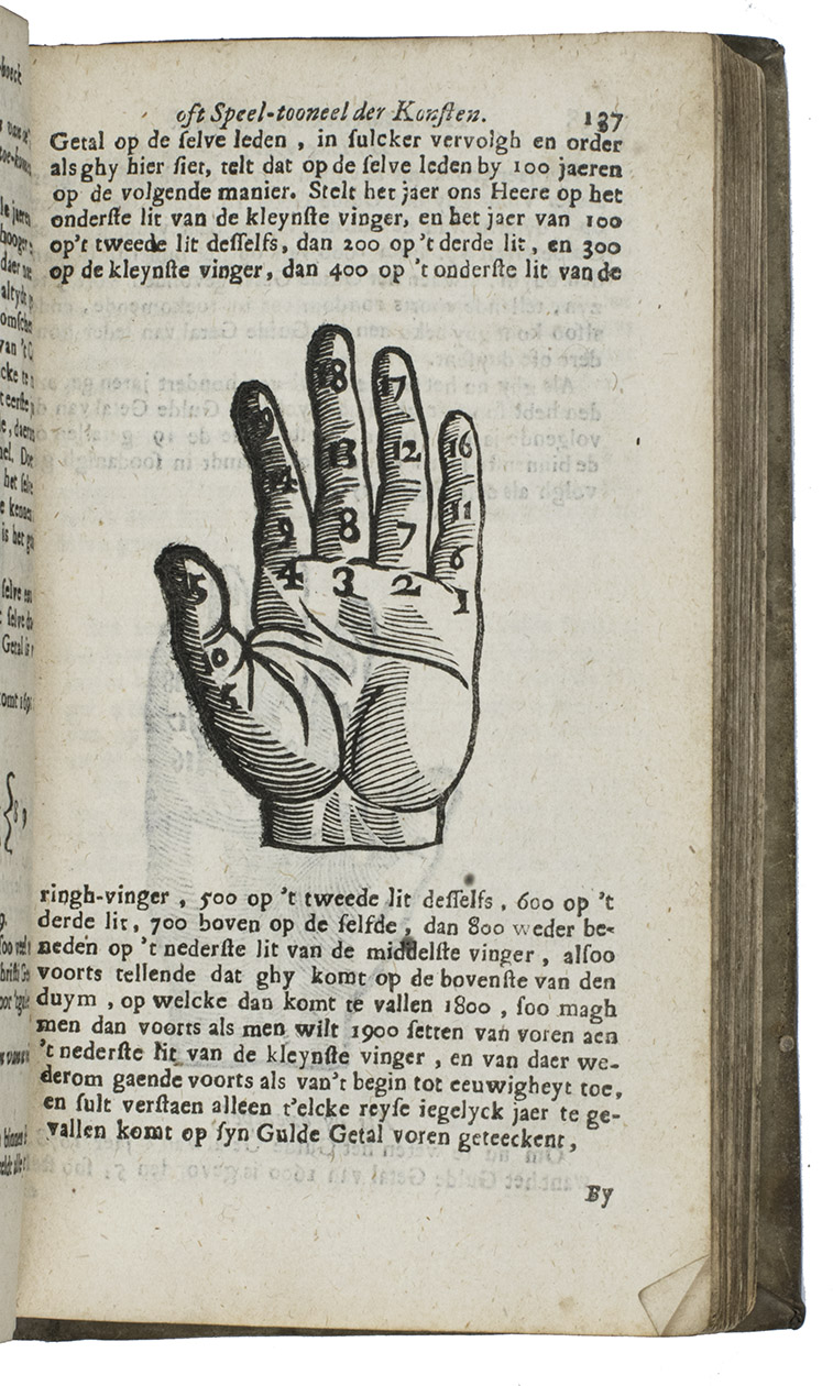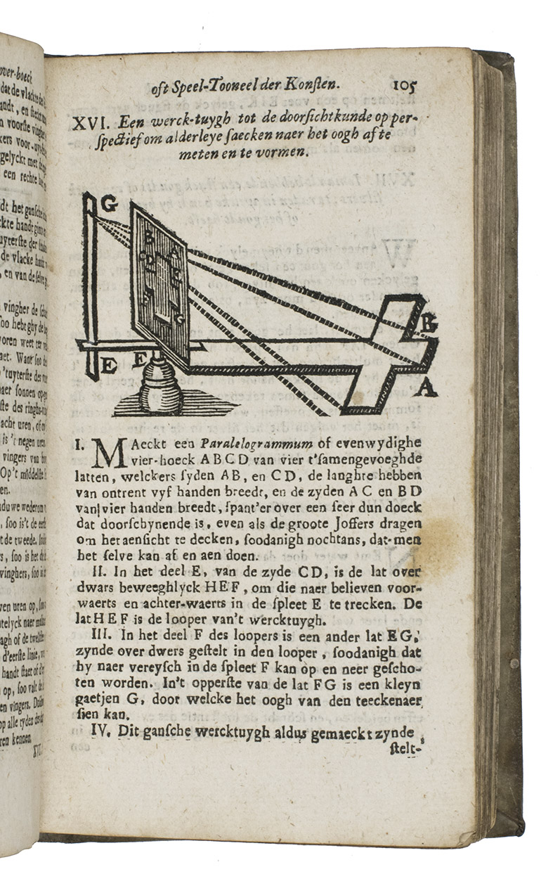 The Tover-boek contains sections on magic tricks, card-games, dice, word and number games, riddles and recipes and instructions for painting and etching, as well as home remedies and recipes for preserving fruits and vegetables, toiletries, fireworks, etc., collected from various sources. The section on drawing and colouring, for instance is taken from Willem Goerees Inleydinge tot de algemeene teyken-kons, published in 1678.